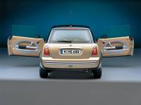 MINI Cooper сзади с открытыми дверьми.